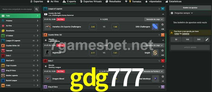 O gdg777 oferece uma grande seleção de opções de apostas em e-sports com probabilidades competitivas
